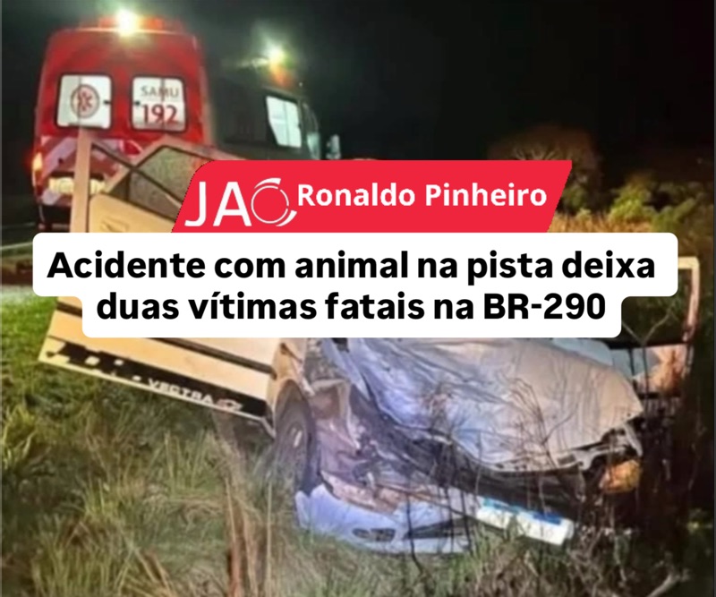 Um grave acidente registrado na madrugada desta quinta-feira (4) resultou na morte de duas pessoas e deixou uma terceira em estado grave na BR-290, em Rosário do Sul. A colisão ocorreu no km 502,9 da rodovia, a aproximadamente 22 quilômetros do trevo principal da cidade. De acordo com a Polícia Rodoviária Federal (PRF), um Vectra emplacado em Cruz Alta seguia no sentido Rosário do Sul–Alegrete quando atingiu um cavalo que estava solto na pista. O impacto foi fatal para dois passageiros: um homem de 26 anos, natural de Saldanha Marinho, e outro de 42, de Cachoeira do Sul, que morreram no local.