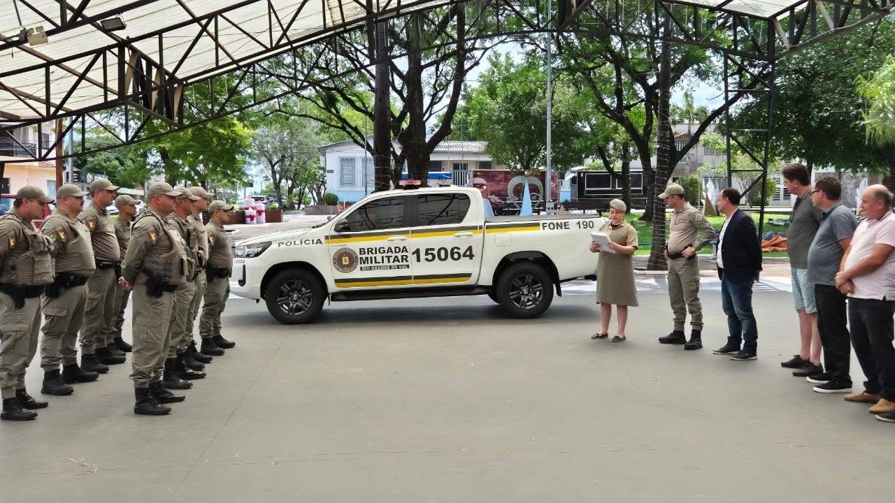 A Brigada Militar de Porto Xavier recebeu, na tarde desta sexta-feira (21/11), um importante reforço para o policiamento ostensivo: uma caminhonete Toyota Hilux, modelo 2025, semiblindada, identificada pelo prefixo 15064.