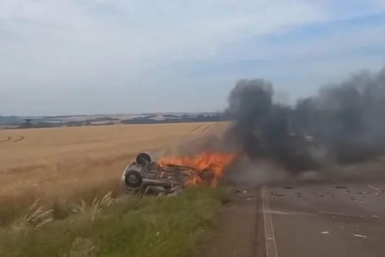 Conforme informações da Brigada Militar, o acidente aconteceu por volta das 10h, envolvendo um Chevrolet Celta e um caminhão. Com o impacto da colisão frontal, o carro saiu da pista, capotou e pegou fogo.