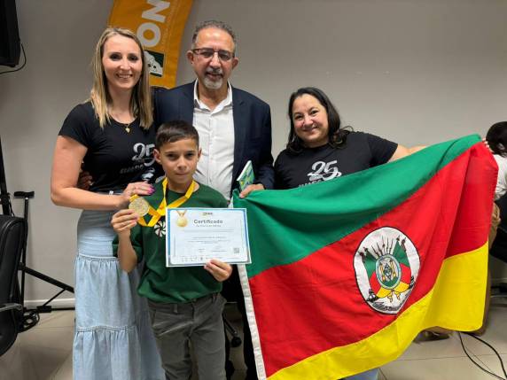 O estudante Luiz Gustavo Dias de Carvalho, do 2º Ano B do 2º Ciclo da Escola Municipal de Ensino Fundamental Paulo Freire, em Santo Cristo (RS), conquistou a medalha de ouro na Olimpíada Nacional de Ciências (ONC) e recebeu a premiação em solenidade realizada no dia 3 de novembro, em Brasília.