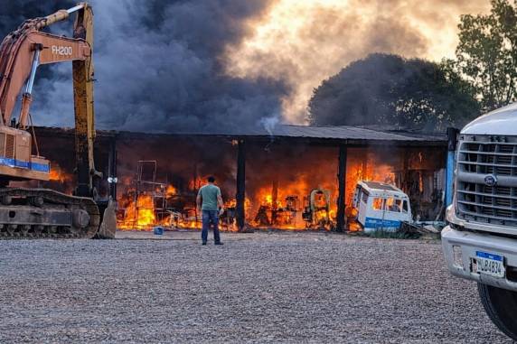 Os prejuízos foram significativos, atingindo a estrutura do galpão, além de veículos e equipamentos.