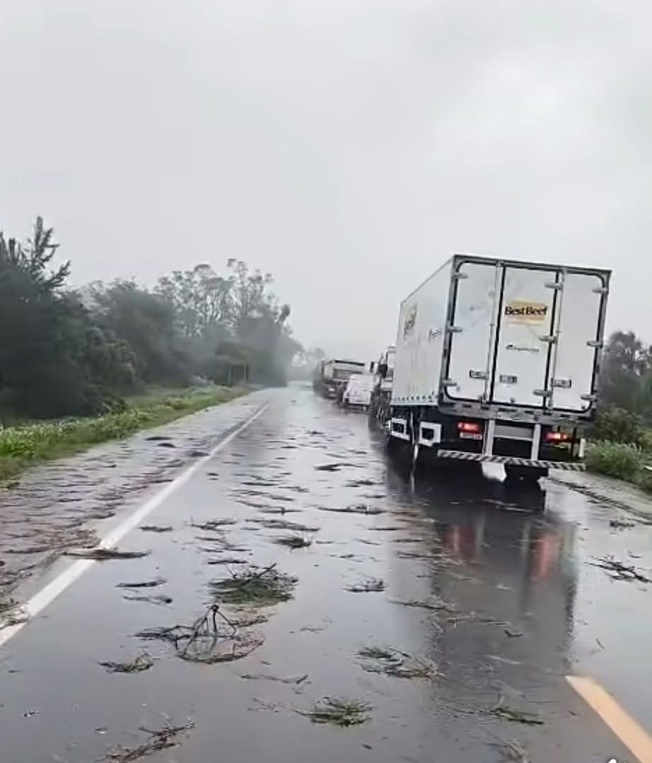 Um temporal registrado no início da manhã desta quinta-feira, 23 de abril, provocou a queda de árvores sobre a pista da BR-158, nas proximidades de Cruz Alta, no Noroeste do Rio Grande do Sul.